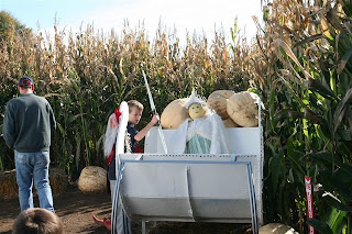 The answer is, of course, to fling then with a giant slingshot and try to hit a target a football field away at which point a huge loud horn sounds and you win a giant pumpkin. All this only costs you 50 cents a shot. The folks at Spooner Farms are brilliant.